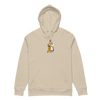 This hoodie features Albina Kolesnichenko’s "Soulmates" illustration: a couple in traditional Ukrainian attire, captured in a tender moment. They are characters from the enchanting world of vertep, a Ukrainian Christmas puppet theater that originates from the 16th century.
