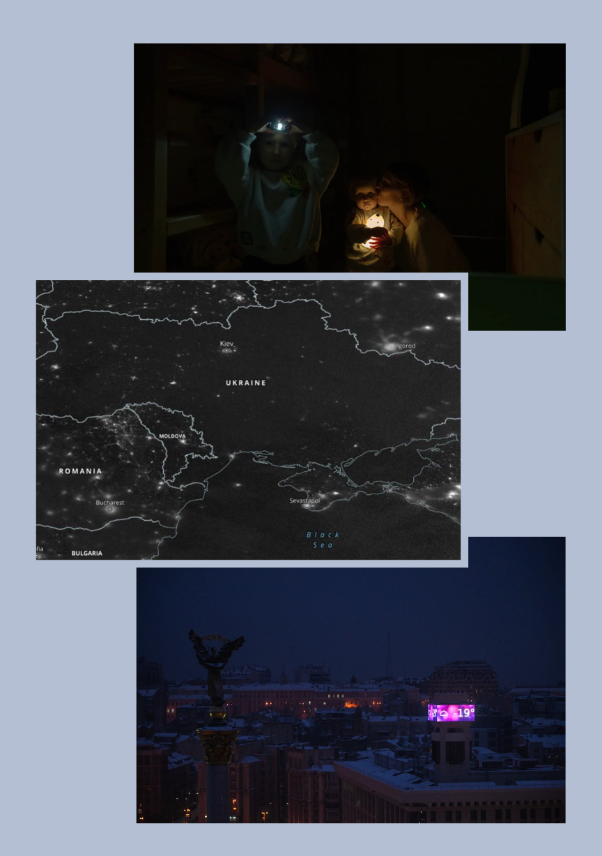 Satellite images capture the reality: at night, Europe glows with light — except Ukraine, which sits in darkness. This striking contrast inspired our I Stand With Ukraine Through Darkness.