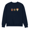 This sweatshirt, illustrated by Ukrainian artist Albina Kolesnichenko, features a collection of vibrant masks, each representing a character from the enchanting world of vertep, a Ukrainian Christmas puppet theatre born in the 16th century.